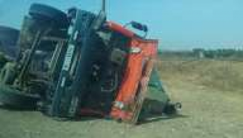 انقلاب شاحنة يتسبب في إغلاق طريق عام